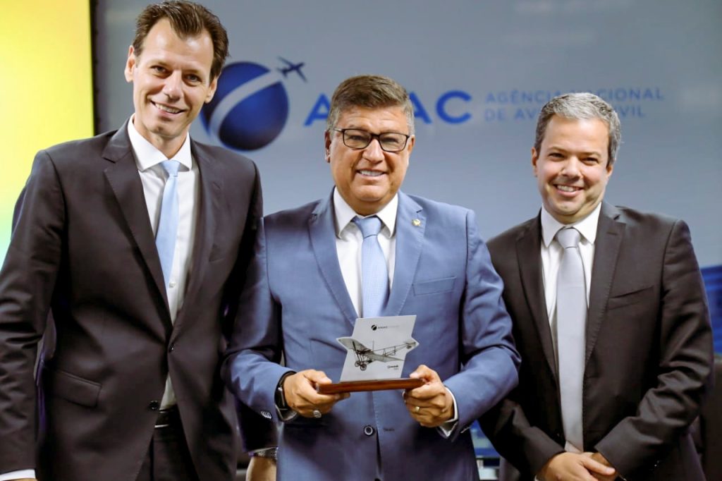 O senador Carlos Viana (PL-MG) recebeu, nesta segunda-feira (24), uma homenagem da Agência Nacional de Aviação Civil (ANAC) pela relatoria da Medida Provisória que criou o Programa Voo Simples.