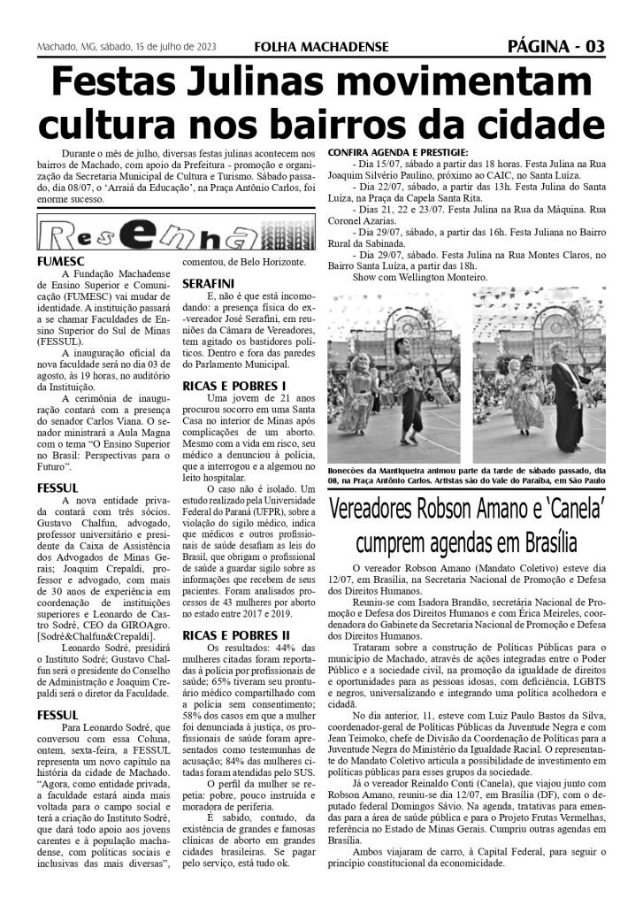 O senador Carlos Viana (Podemos-MG) participará da inauguração, no dia 3 de agosto, às 19h, da Faculdades de Ensino Superior do Sul de Minas (FESSUL), em Machado (MG). O parlamentar irá ministrar a Aula Magna com o tema: "O Ensino Superior no Brasil: Perspectivas para o Futuro".